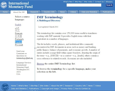 This terminology list contains over 150,000 terms useful to translators working with IMF material. It provides English terms with their equivalents in a number of languages. (English, Spanish, Portuguese, French, Japanese, Chinese, Russian)